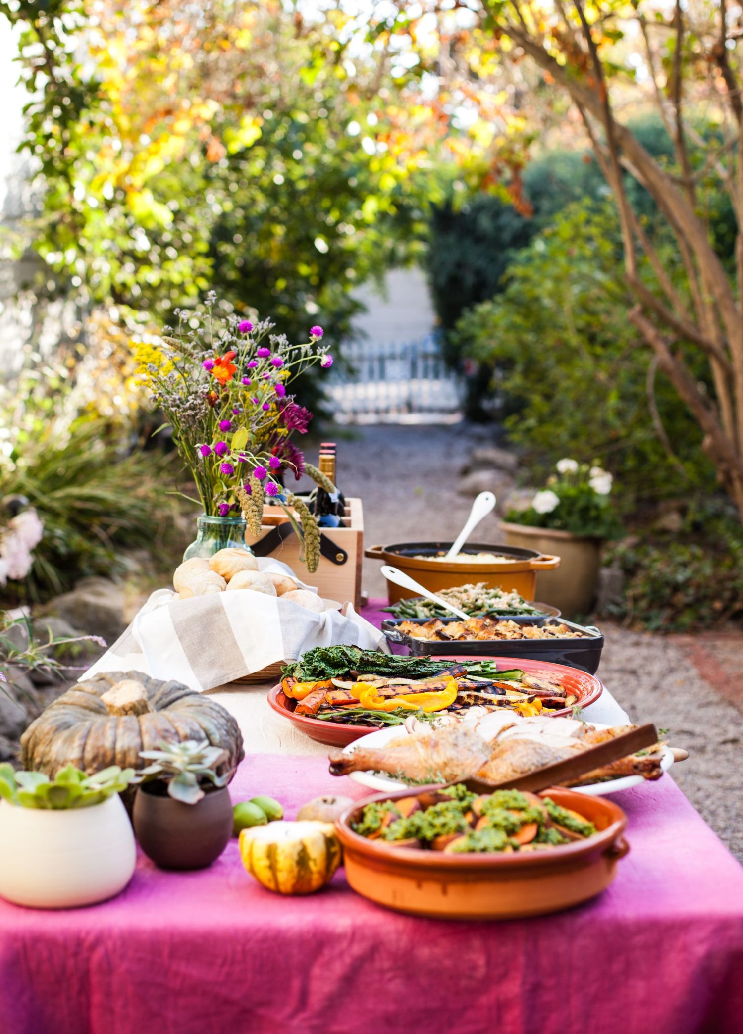 A buffet table allows guests to flow through the food line — perfect for a casual gathering.